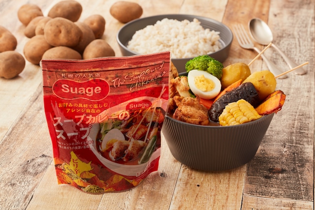 すあげのスープカレーのスープをそのままパウチにしました♪具材は入っていないので、自分オリジナルの具材で楽しめちゃいます!! 贈り物にも♪ご自宅で、サッとご飯を作りたいときにも♪ ☆オプションで辛味スパイスも一緒にいかがですか? すあげ特製マサラとカイエンペッパーを独自にブレンドした特製辛味スパイスです。 お好みの辛さにてお楽しみください。 ・スープ1パック1人前につきティースプーン半分で 一般的な中辛となります ※本品はスープのみとなります。 ※1パックあたり実店舗で提供しているスープの1人前分となります。 ※発送まで3日~5日程度お時間をいただきます。